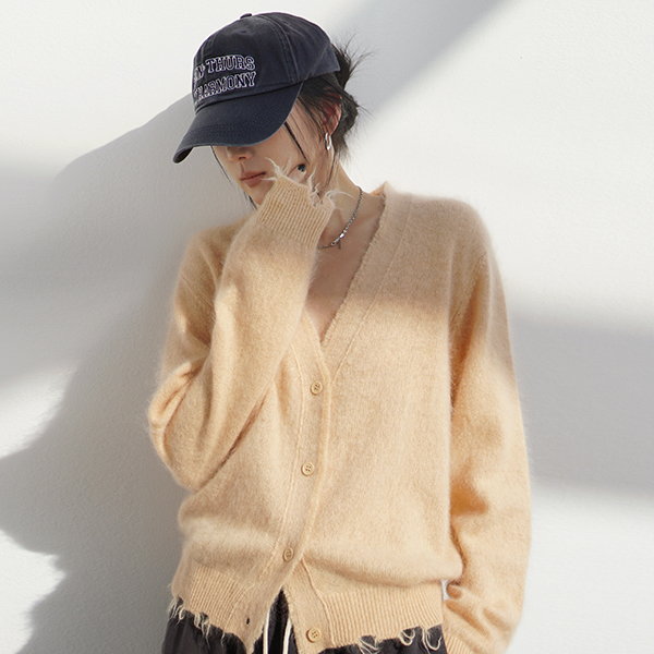 DISTRESSED V-NECK WOOL CARDIGAN